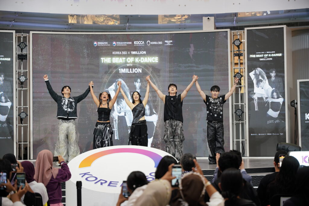 Five members of 1MILLION Dance Studio, Lia Kim, Kooyoung Back, K Chan, Yechan, and Hyewon, were present at THE BEAT OF K-DANCE with 1MILLION last weekend at the Main Atrium of KOREA 360 in Jakarta. The event was held by the Ministry of Culture, Sports, and Tourism of South Korea along with the Korea Creative Content Agency (KOCCA) as one of the cultural exchange missions between South Korea and Indonesia.