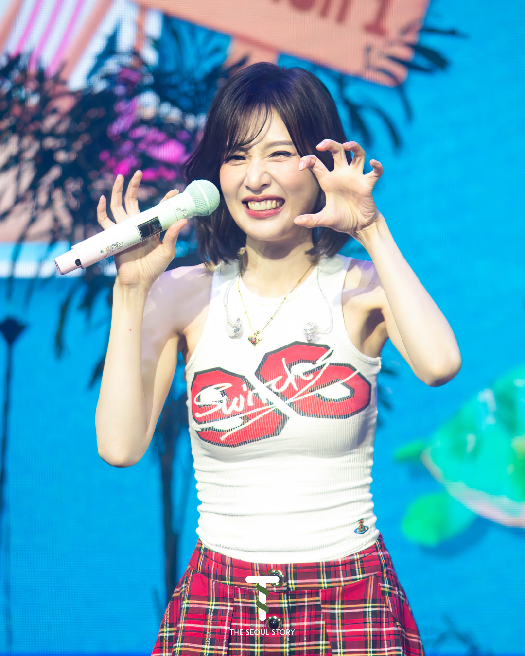 The show then moved into the first segment, Love Splash Moment, where JOY read two heartfelt letters from fans on stage. The first shared their anxieties about the future, but how they found comfort in her solo release even attending every stop of the tour. The second fan expressed how they fell in love with JOY’s bright green hair from her debut music video with Red Velvet.