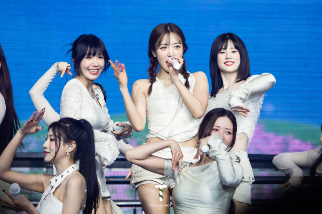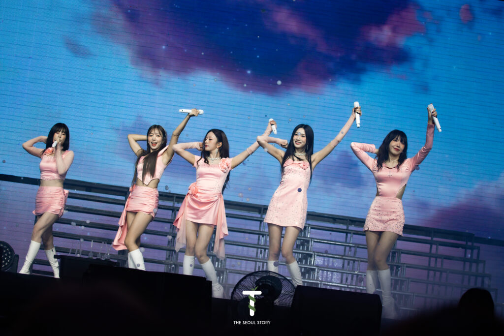 The performances transitioned into an interactive segment during Lovely Day and Wishlist, where members came down the stage and walked around the venue to interact with lucky Pandas and distribute pink signed balls. A funny moment emerged when Hayoung accidentally hit a Panda with a signed ball and she immediately rushed forward to hug the fan, turning the mishap into a core memory for the lucky Panda.
