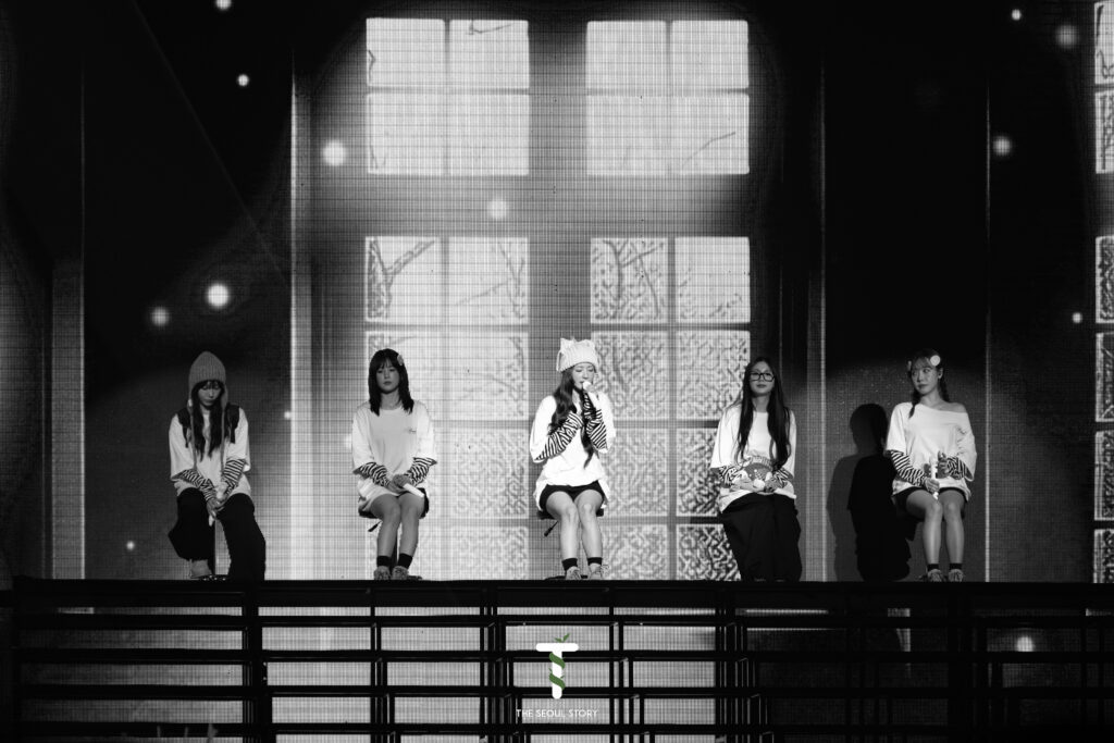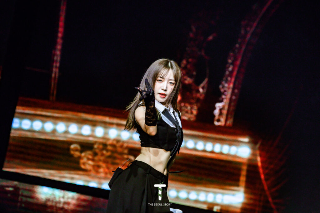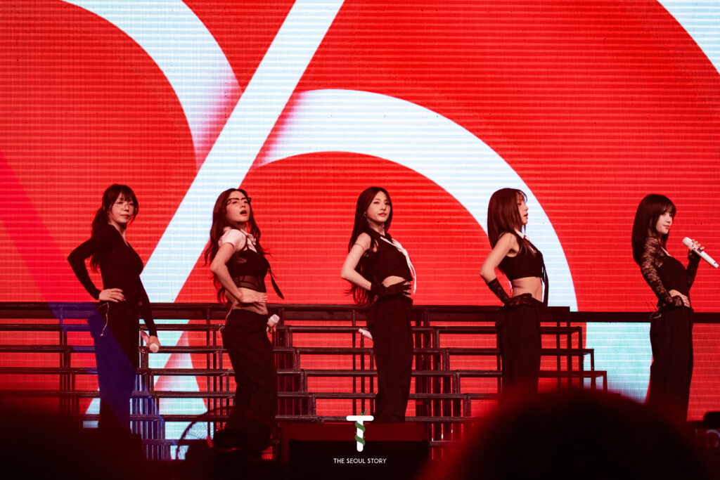 Agreen then made their “debut” on stage donning sharp black suits and ties, performing a powerful cover of TVXQ’sMirotic. Their sophisticated charisma, a stark contrast to their signature cutesy and feminine image, showcased a different side of their stage presence and sent the crowd into a frenzy. Continuing with this theme, Apink (or should I say Agreen?) delivered sleek performances from their mature and chic eras — Fizzy Soda and a mash-up of Nothing and Red Carpet