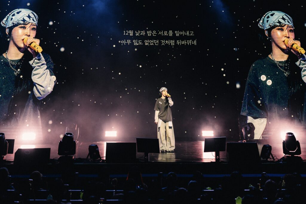 She continued to captivate with heartfelt performances of Weird Day (Feat. Punch), CHEMISTRY, and the catchy, lighthearted Think About, before taking the crowd by storm with fan favorites Goodbyes and Sad Eyes, Over You, and Trying to Say Good-bye. Each song showcased her vocal range and stage charisma, with fans singing along passionately.