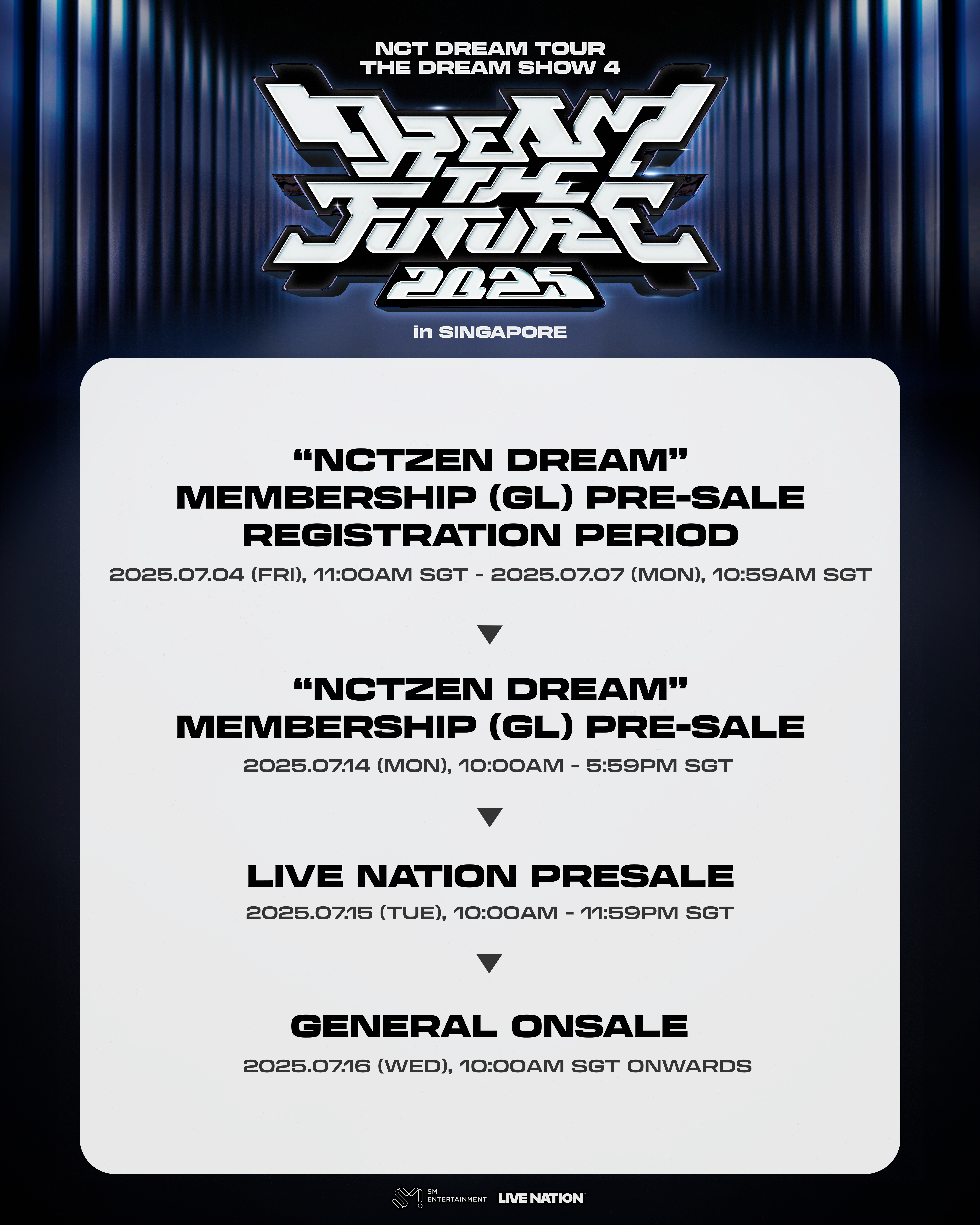 July 14 2025, Monday, 10AM – 5:59PM SGT via Ticketmaster ticketing channels