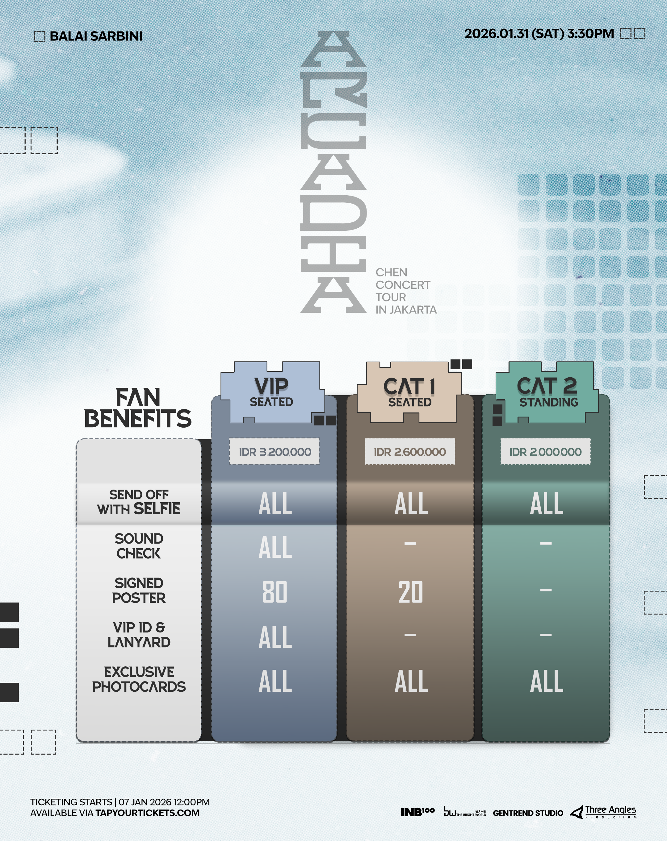 Ticketing starts January 7, 2026 at 12:00PM (WIB) via TAPYOURTICKETS.COM