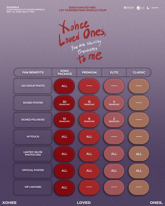 The Philippines is thrilled to welcome one of South Korea’s brightest stars, Han So Hee, as she brings her 2025 HAN SO HEE 1ST FANMEETING WORLD TOUR (Xohee Loved Ones,) to Manila. This much-awaited event is set to take place on September 13, 2025, at Cove Manila, Okada Manila, giving Filipino fans a special chance to see and celebrate the actress up close.