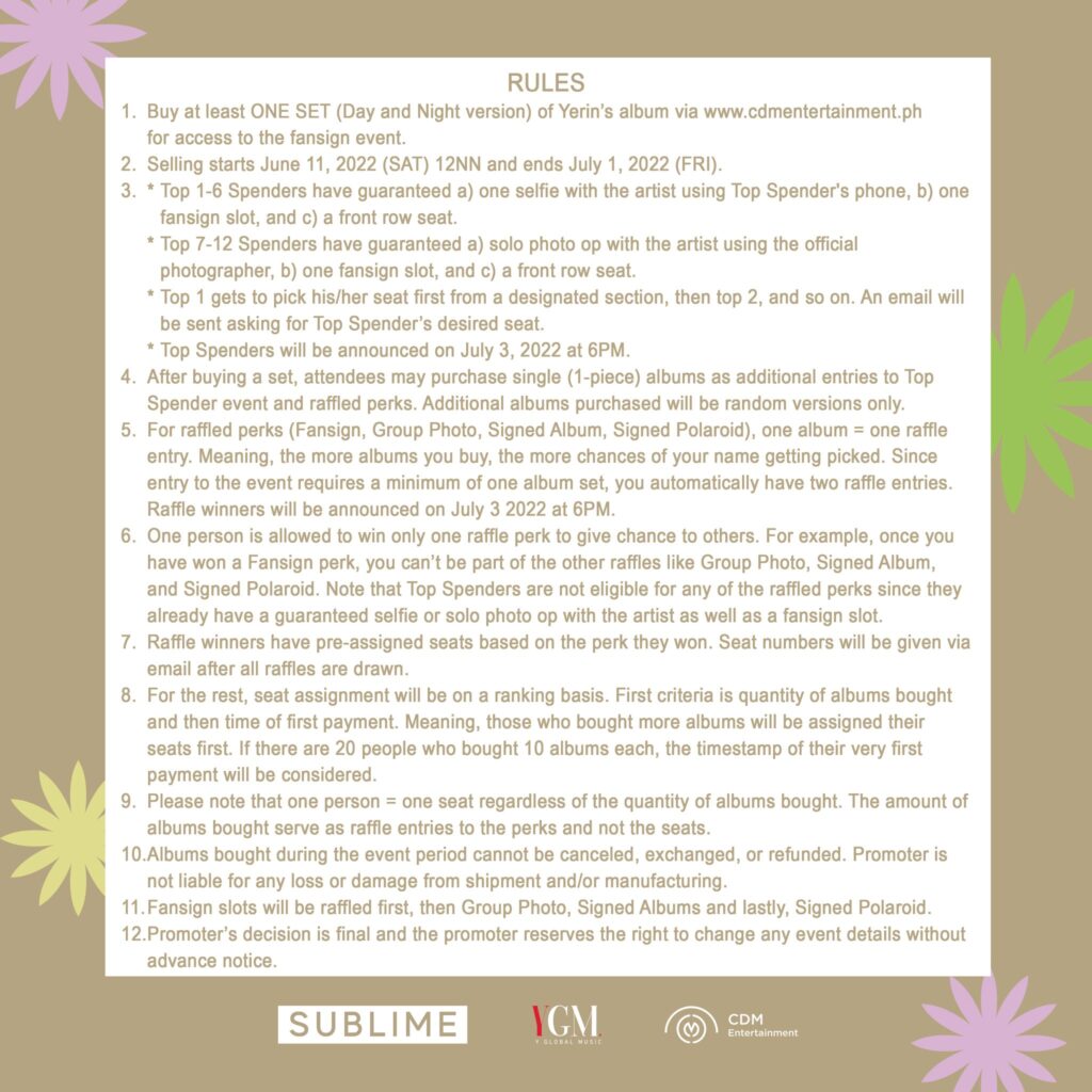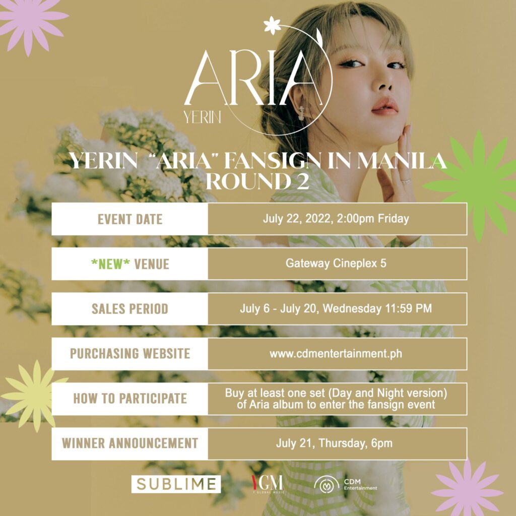 Entry to the event only requires purchasing one set of “Aria” (Day and Night album versions) via https://www.cdmentertainment.ph/. The album selling period has begun and will continue until July 20, 2022, at midnight. More information can be found on CDM Entertainment’s social media pages.