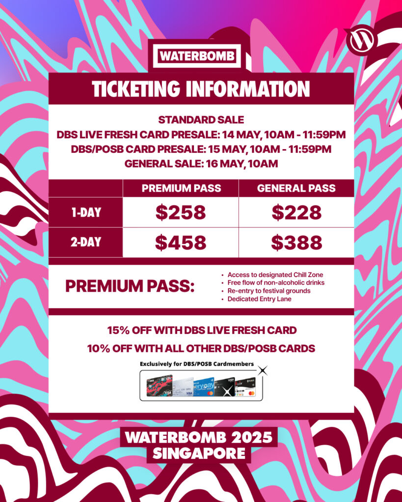 Get ready, Singapore! The iconic WATERBOMB Festival, Asia’s biggest summer music and water festival, is making a splash in the Lion City with its 2025 edition. Known for its high-energy performances, epic water fights, and unforgettable party vibes, WATERBOMB has become a must-experience event across Asia—and now, it’s Singapore’s turn to join the wave.